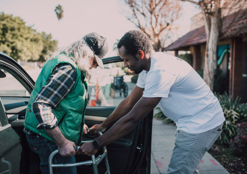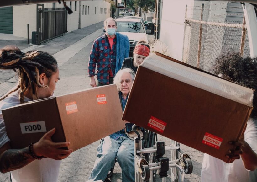 Volunteers helping carry